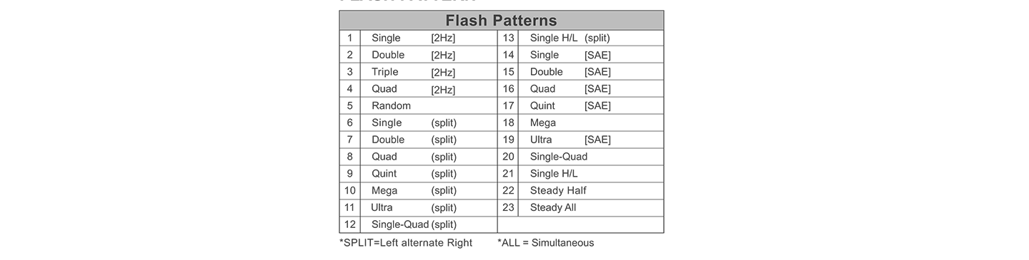 - Non-volatile memory recalls last flash pattern used at power up.