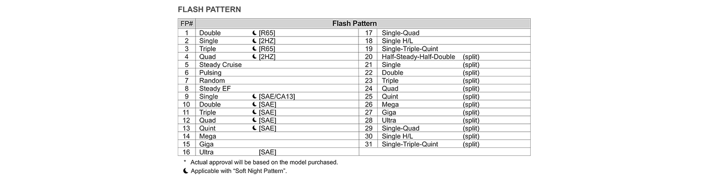 - Flash Pattern Lock function disable FP selection to prevent accidental change of flash patterns.