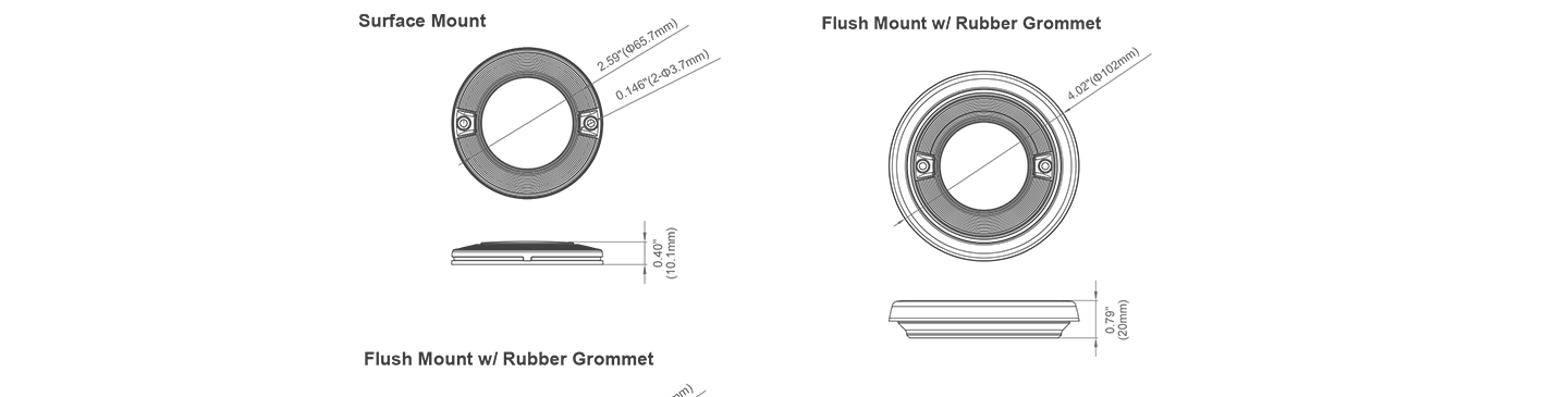 • Versatile Mounting in 2-bolt mount, Rubber boot flush mount or adhesive mount
